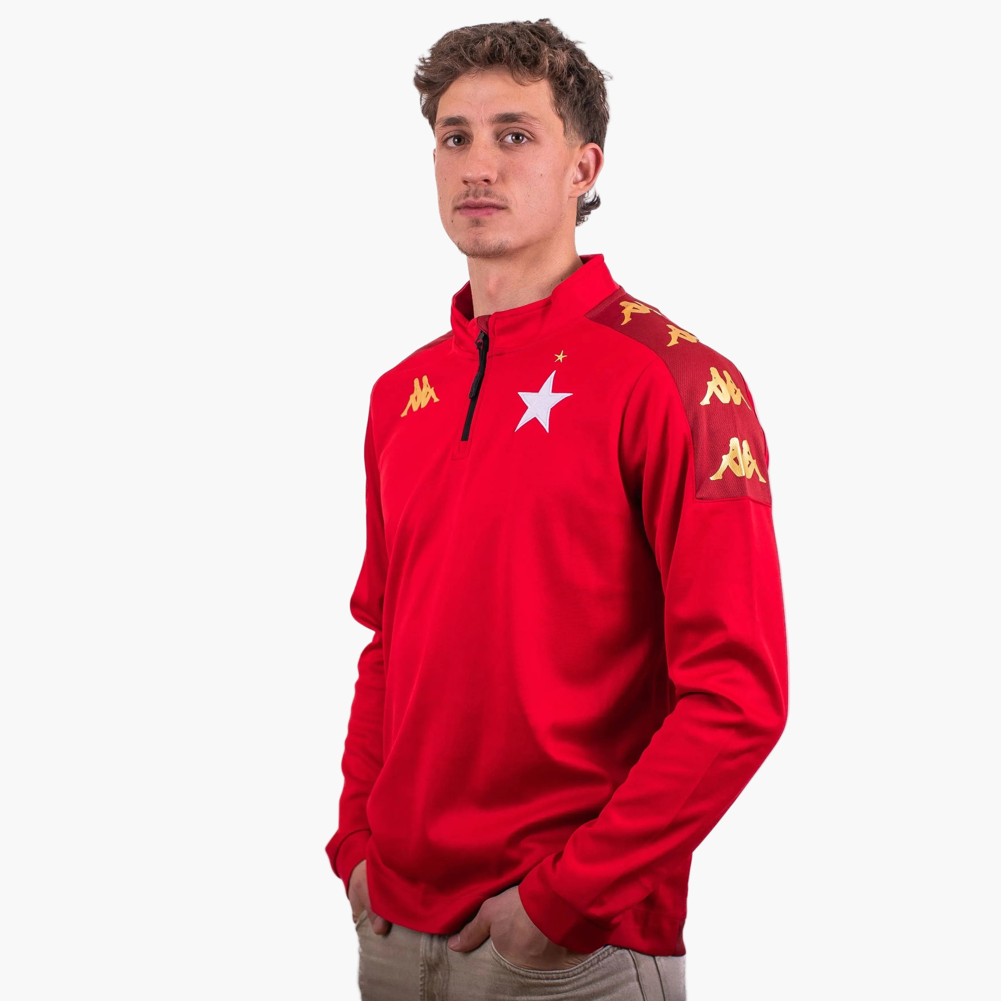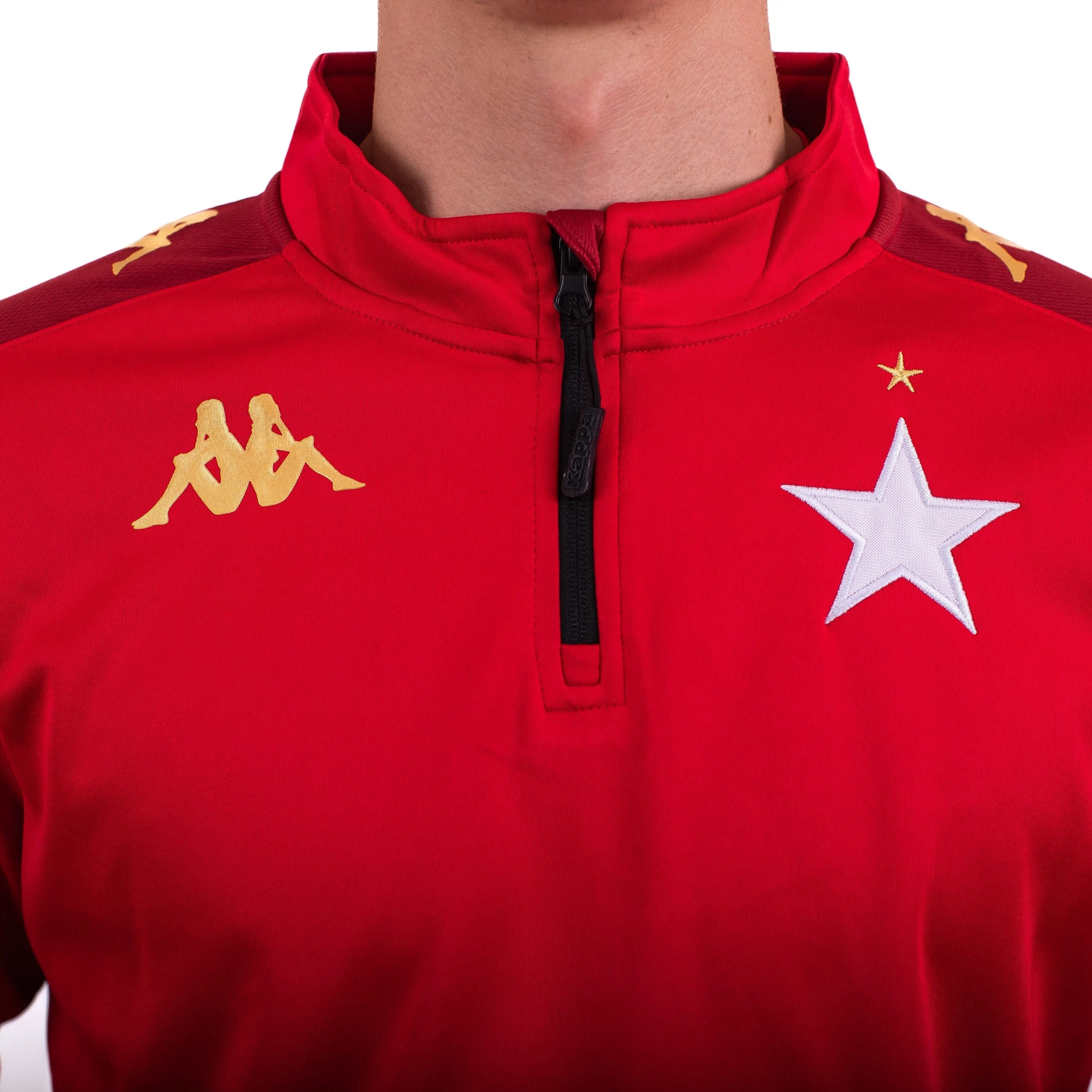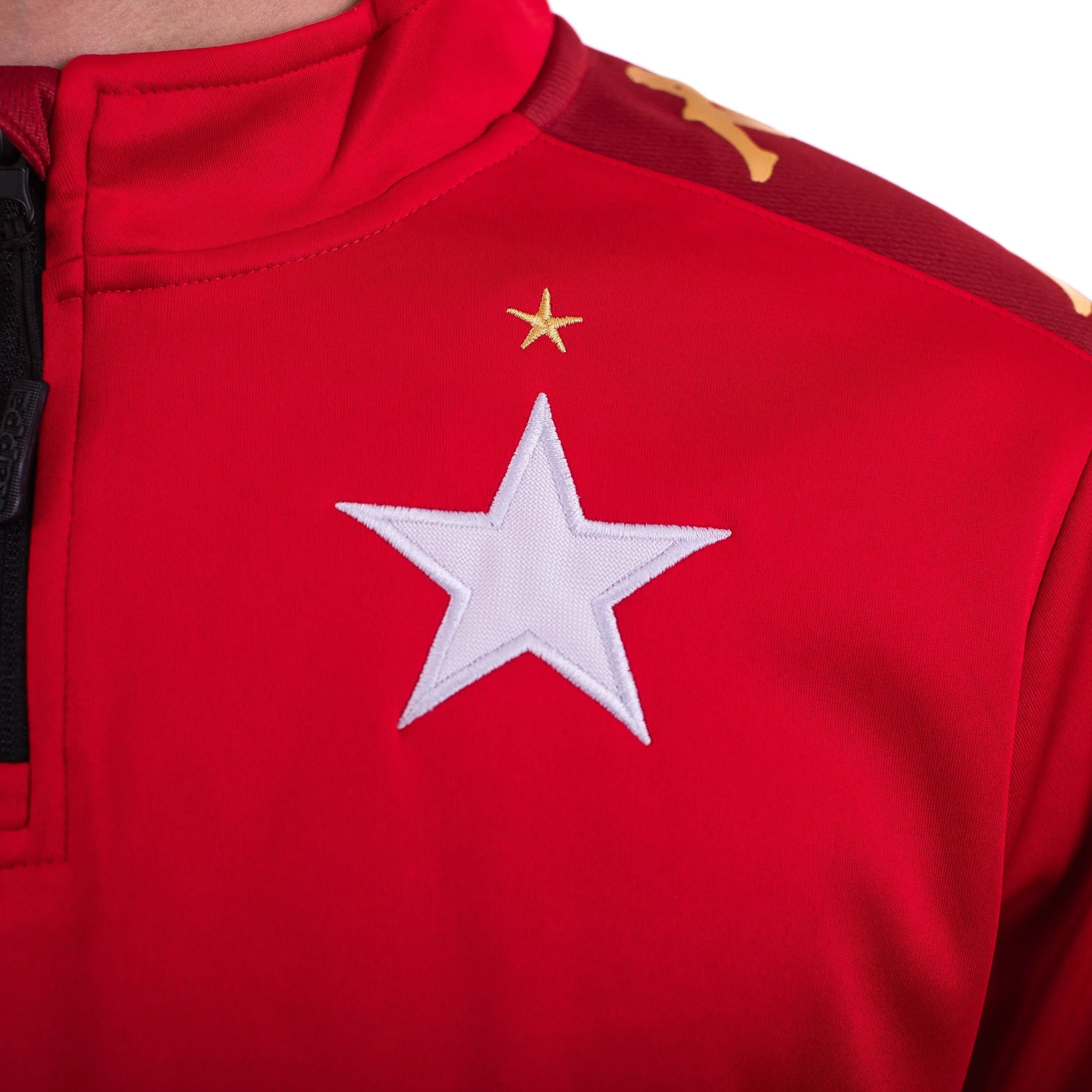The Kappa GASSOLO training sweatshirt – red is a must-have wardrobe item for every Wisła Kraków fan, combining club pride with sporty comfort. Designed for intense training sessions and everyday wear, this Kappa sweatshirt stands out with its distinctive style, durable materials and practical details that make every moment on the pitch or away from the stadium special. With its vivid red color and contrasting details, the sweatshirt catches the eye and emphasizes your connection to the club. A prominent white star motif appears on the chest, while subtle gold Kappa accents on the shoulders highlight the sporty character of the garment. The cut is designed to provide freedom of movement during training while still looking great in your free time.