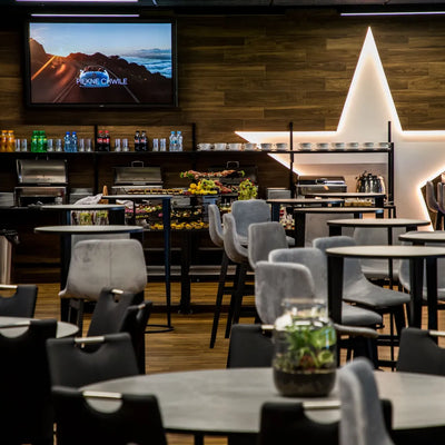 Eleganckie wnętrze Strefy Maxfliz VIP Gold zostało zaprojektowane tak, aby goście mogli spędzić komfortowo czas przed meczem, w przerwie oraz po ostatnim gwizdku sędziego. Dzięki klimatycznemu designowi przestrzeń doskonale nadaje się do biznesowych spotkań oraz rozmów o piłce przy aromatycznej kawie.