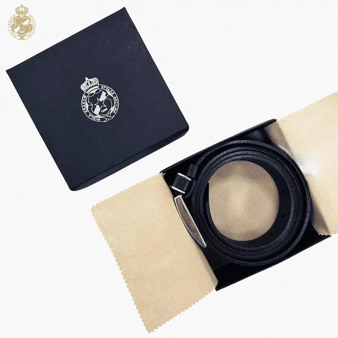 Noś Wisłę Kraków z klasą i dumą — Pasek skórzany Wisła Kraków – czarny i postaw na połączenie premium wykonania, funkcjonalności i klubowego charakteru.